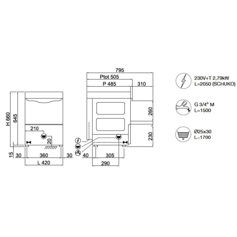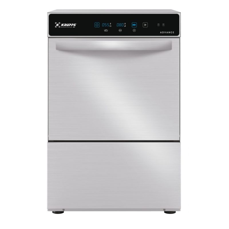 Посудомийна машина Krupps C327 - це компактна фронтальна модель створена для швидкого і дбайливого миття келихів, чашок і блюдець, оснащена сучасною панеллю управління ADVANCE з чотирма циклами миття і автоматичним зливним циклом. Інформативний дисплей відображає температуру бака і бойлера, повідомлення системи самодіагностики, повідомлення про технічне обслуговування і етап роботи через індикатор SMART START, що змінює колір в залежності від статусу процесу. Електронна плата дозволяє точно регулювати час і температуру миття і ополіскування, передбачена функція Термостоп для стабільної якості результату. Стандартний подвійний дозатори миючого та ополіскуючого засобів забезпечують коректну та економічну подачу хімії, а формовані мийні важелі гарантують тривалий термін служби та безвідмовну роботу. Повністю виготовлена з нержавіючої сталі AISI 304, машина відрізняється стійкістю до інтенсивної експлуатації і зручна в обслуговуванні завдяки фронтальному доступу до всіх вузлів. Продуктивність до 40 касет на годину при температурі +55 C, максимальна висота келиха 240 мм, необхідна жорсткість води 7–10 f, а також комплект поставки з двох кошиків 350х350х150 мм, тримача для тарілок і тримача для приладів роблять Krupps Advance C327 ідеальним вибором для кафе, барів, кав'ярень і ресторанів, які прагнуть до зразкового рівня гігієни та надійності обладнання.Характеристики