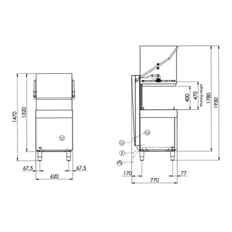 Купольна посудомийна машина Krupps CH100 Advance - це потужне і надійне рішення для професійних кухонь, де важливо швидко і якісно мити посуд. Інноваційна панель керування ADVANCE з 4 циклами миття та автоматичним зливом (за встановленого зливного насоса) дає змогу легко контролювати температуру бака та бойлера, отримувати сповіщення системи самодіагностики та стежити за плановим обслуговуванням. Інтелектуальна кнопка «Пуск» змінює колір залежно від стану машини, а електронна панель керування забезпечує точне налаштування температури і часу миття та полоскання. Krupps CH100 Advance справляється з широким спектром посуду - від склянок і тарілок до гастроємностей GN 1/1, досягаючи вражаючої продуктивності в 60 кошиків або 1080 тарілок на годину. Система «PUSH TO START» запобігає запуску порожньої мийки, знижуючи витрату води та енергії. Міцний корпус із нержавіючої сталі AISI 304 гарантує довговічність, а зручний фронтальний доступ до компонентів спрощує технічне обслуговування. Максимальна висота скла 390 мм, максимальний діаметр тарілки 415 мм, максимальна висота дека 390 мм, максимальна висота хлібного кошика 390 мм, максимальний розмір гастроємності GN1/1. Об'єм бака 24 л. Об'єм бойлера 7,3 л. Рекомендована жорсткість води 7/10 f. Витрата води за цикл (за рекомендованого тиску 2 BAR) 2,4 л. Стандартний комплект поставки включає: кошик для столових приладів, кошик для келихів (500x500x100 мм), кошик для 18 тарілок (500x500x100 мм).Характеристики