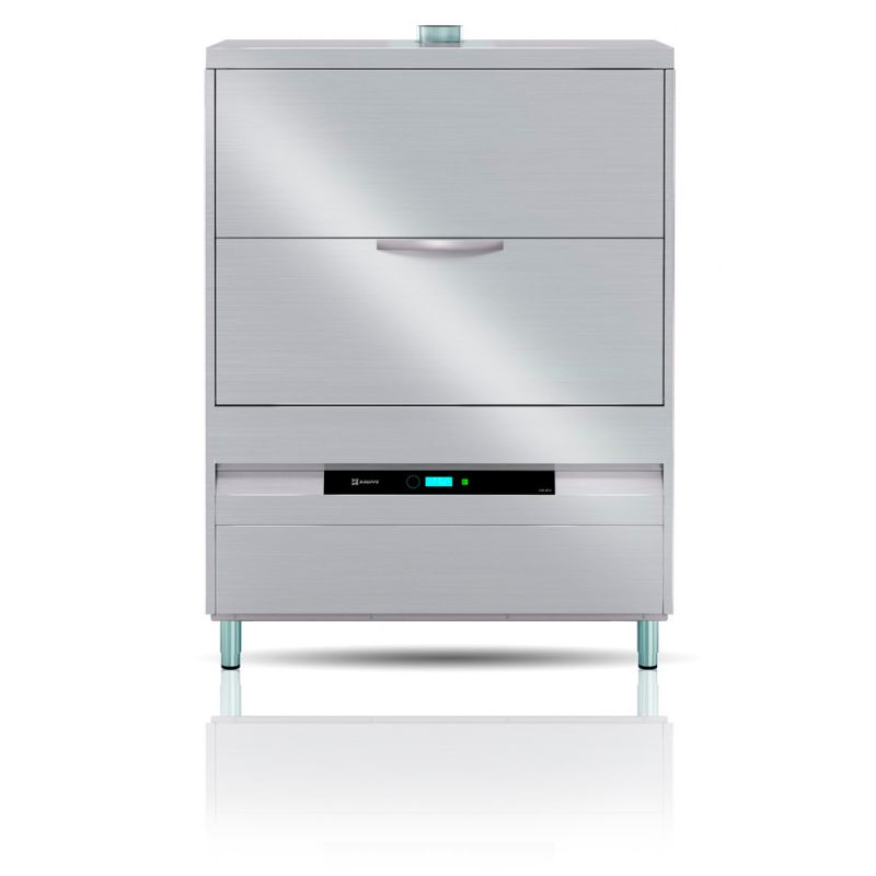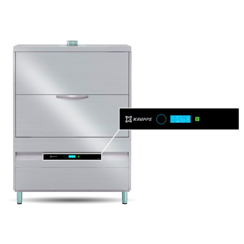 Котломиюча машина Krupps EL991E є оптимальним вибором для тих, кому потрібно ефективне миття предметів всередині її двох кошиків з розмірами до 575x645x825 (h) мм завдяки двом миючим насосам і двом обполіскувачам. Машина підходить для миття гастроємностей, каструль різного типу, планетарних міксерів, приладів, а також 52 тарілок за кожен цикл, так як вона оснащена двома кошиками з максимальною продуктивністю 60 кошиків / год (3120 тарілок / год). Робоча висота і противагові двері спрощують завантажувальні операції, тоді як подвійні стінки покращують тепло-звукову ізоляцію. Закруглена штампована ванна з вбудованими фільтрами гарантує максимальну чистоту і ідеальний злив.