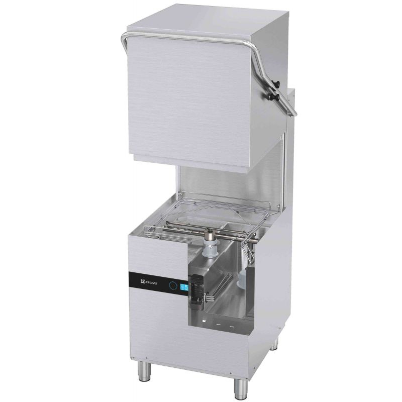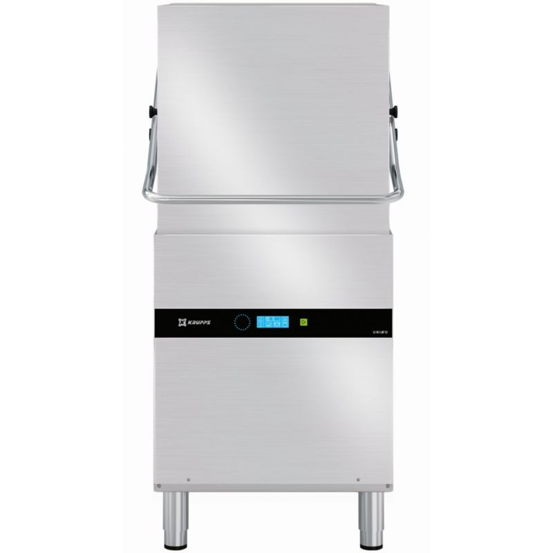 Посудомийна машина Krupps K1100E з лінійки Koral - це професійне рішення для підприємств громадського харчування, де цінують надійність, гігієну та продуктивність. Розроблена для максимального контролю, універсальності та ефективності, модель K1100E являє собою купольну посудомийну машину з верхнім завантаженням, оснащену сучасним сенсорним дисплеєм UNIKO із загартованого скла. Інтуїтивний інтерфейс забезпечує швидкий доступ до широкого вибору мийних циклів і постійний моніторинг стану машини через кнопку SMART START. Завдяки електронній платі можна повністю налаштовувати робочі параметри, а функція Termostop гарантує початок миття і ополіскування тільки після досягнення потрібної температури. З корисною висотою купола 440 мм, модель ідеально підходить для миття тарілок діаметром до 415 мм, келихів і каструль висотою до 390 мм, листів GN 1/1, а також посуду і гастроємностей різних розмірів.