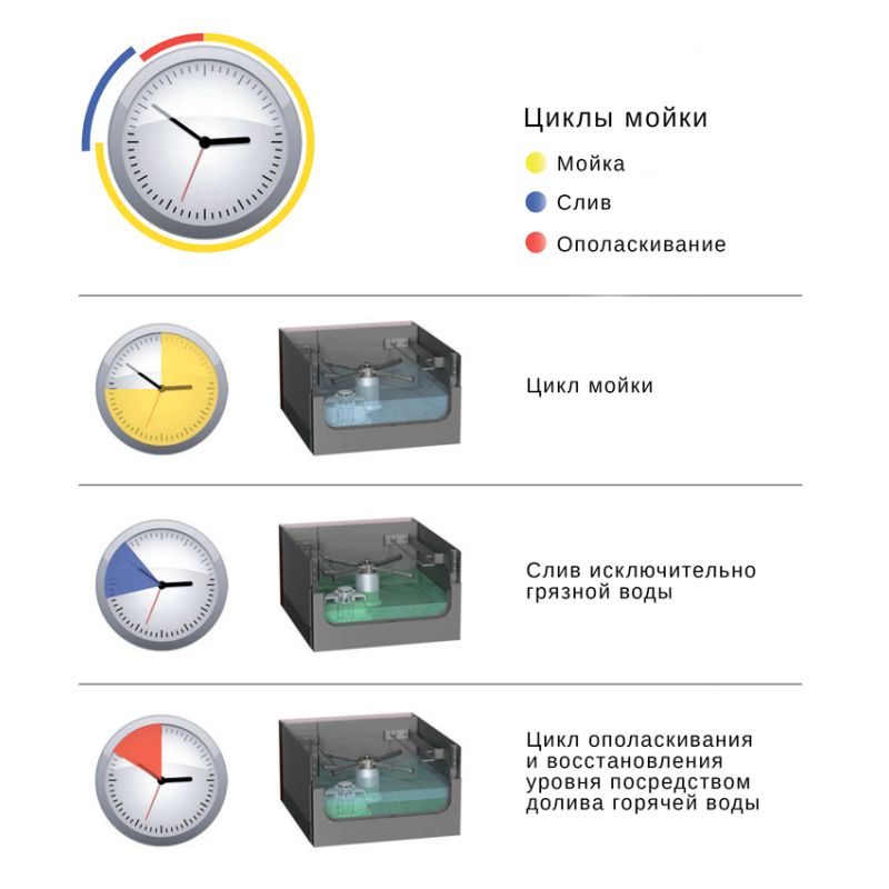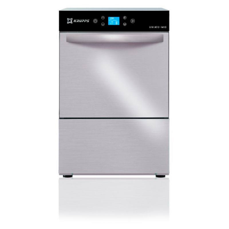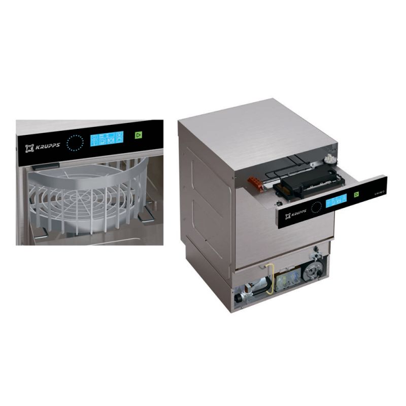Посудомийна машина Krupps K205E має два вбудованих дозатора - для ополіскувача і для миючого засобу. Є електронна панель управління, за допомогою якої легко регулювати різні параметри мийки - від кількості використовуваного миючого засобу до тривалості циклу і температури води. Вбудована система Termostop не дозволяє починати мийку або ополіскування, поки вода не буде прогріта до встановленого рівня. Цикл налаштовується і може тривати від 75 до 130 секунд. Є дисплей і додатковий зливний насос. Максимальна висота посуду - 25 см.