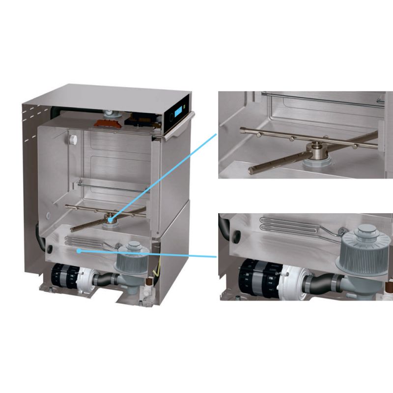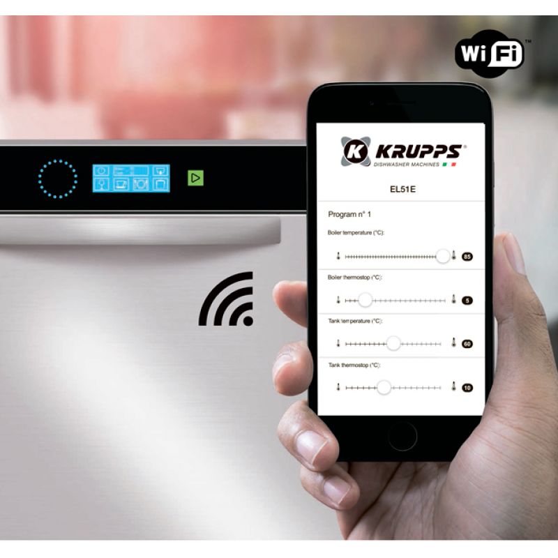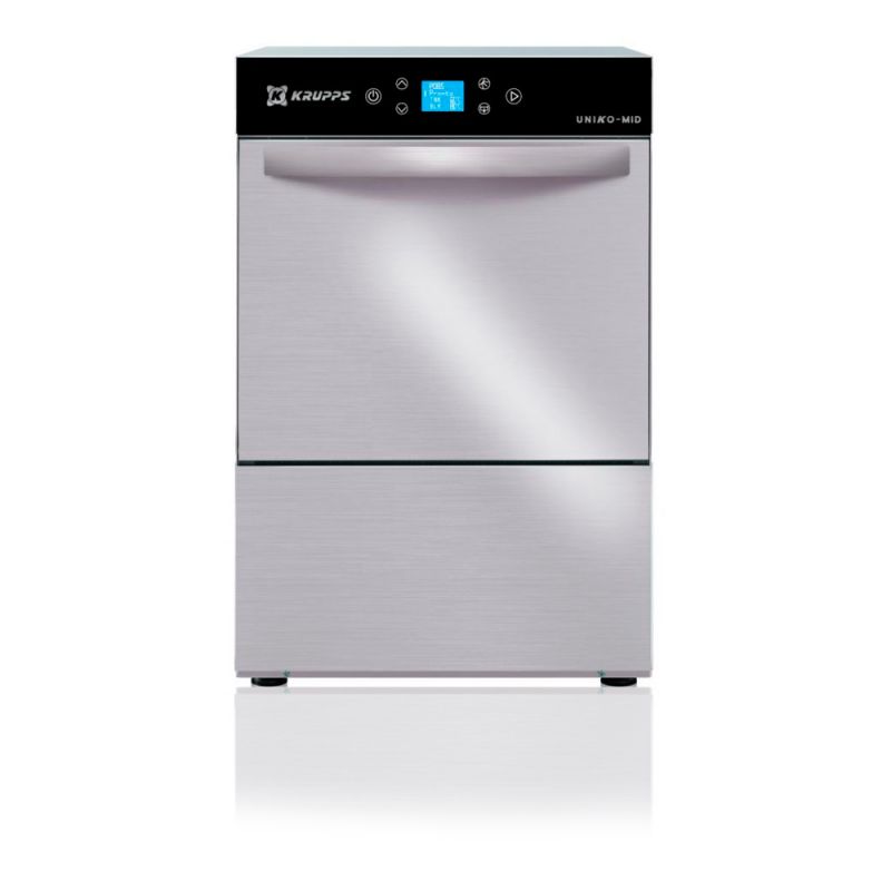 Посудомийна машина Krupps K209E італійського виробництва повністю задовольнить потреби середнього і малого виробництва громадського харчування. Дана модель оснащена дозаторами для миючого і обполіскуючого засобу. Особливість конструкції, функціональність і висока продуктивність дозволяє швидко і якісно мити великі обсяги посуду. Касета розрахована на посуд з максимальною висотою 29,5 см, а розмір касети - 40 * 40 см. Даний апарат обробляє до 48 касет на годину. Цикли мийки можна налаштовувати, коригуючи температуру води і тривалість обробки. Є дисплей. Високоякісна нержавіюча сталь, з якої виконана машина, дозволяє використовувати її регулярно і не боятися появи іржі або корозії. Апарат також оснащений функцією Termostop, яка регулює нагрівання води до старту програми.