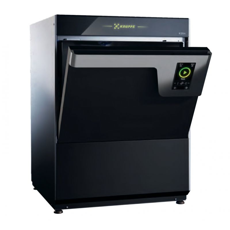 Машина для миття келихів Krupps KE40UT з лінійки Kera поєднує трифазну потужність, компактні габарити та інноваційні інженерні рішення, забезпечуючи бездоганне миття келихів, чашок, тарілок і блюдець при висоті завантаження до 310 мм. KE40UT гарантує понад 30% економії енергії завдяки атмосферному бойлеру і продуманій системі теплоізоляції з подвійними стінками +18 мм, зливний насос Ecoclean і насос ополіскування забезпечують повну стабільність робочих параметрів і відповідність санітарним вимогам. Інтелектуальна система Acquatech підтримує постійний тиск, потік і температуру ополіскування, а Level Control System контролює рівень води у ванні, виключаючи переповнення і коливання якості миття; функція Termostop додатково гарантує, що ополіскування починається тільки при досягненні заданої температури. Управління машиною зручне завдяки великому 5-дюймовому TFT-дисплею, який дозволяє вибирати робочі програми, точно регулювати дозування миючих засобів і відстежувати стан обладнання в реальному часі. Вбудовані Wi-Fi і Bluetooth відкривають доступ до віддаленої діагностики і налаштувань, забезпечуючи контроль над роботою машини з будь-якої точки. Конструкція KE40UT виконана з нержавіючої сталі AISI 304, оснащена дверцятами SOFT Door і системою плавного запуску SOFT Start, що підвищує комфорт використання і продовжує термін служби обладнання. Продуктивність до 48 касет на годину при температурі підведення води +55 C, сумісність з жорсткістю води 7–10 f, наявність тримача для тарілок, тримача для приладів і двох кошиків 400х400х150 мм в базовій комплектації роблять KE40UT універсальним вибором для барів, ресторанів, кафе і готелів, яким важливо отримувати високий результат, знижувати енерговитрати і забезпечувати преміальний рівень сервісу для гостей.